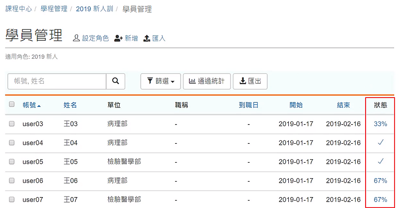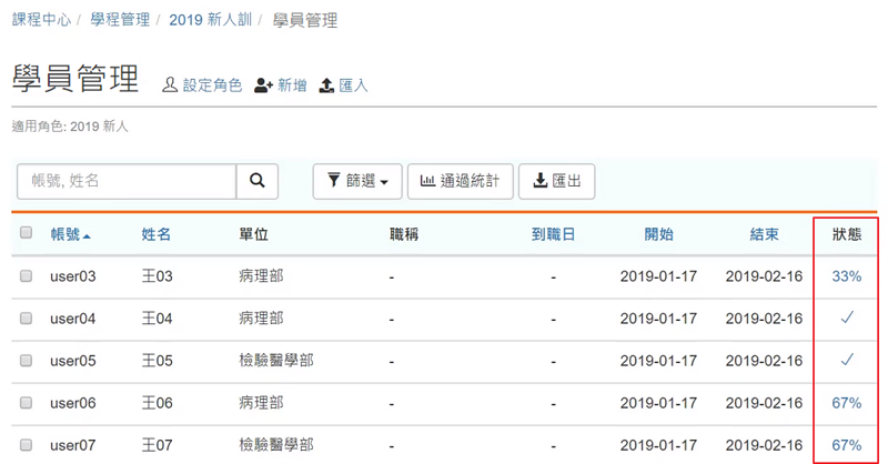 只要點擊「學員管理」,就可以看到每個人的完成狀態。