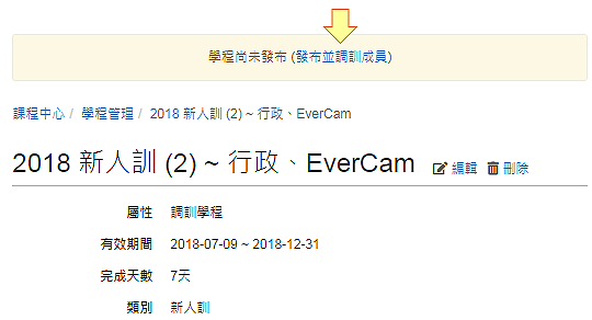 設定完成後,只要將調訓學程發布,就會直接將成員加入 (調訓) 到規劃的課程 (執行)。
