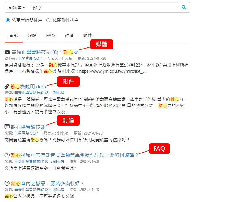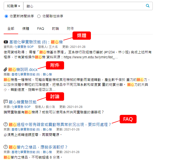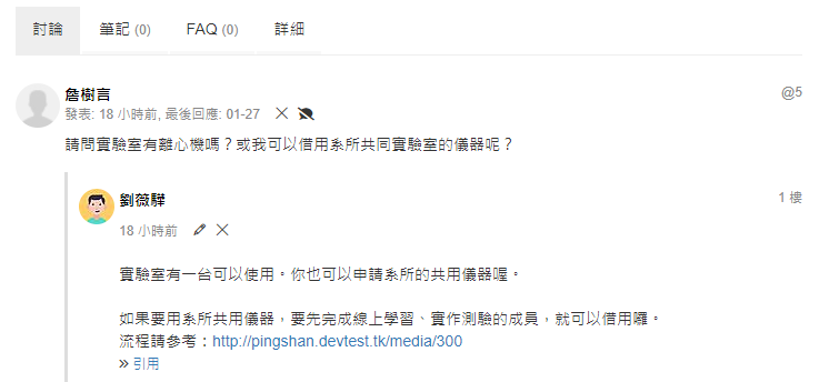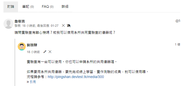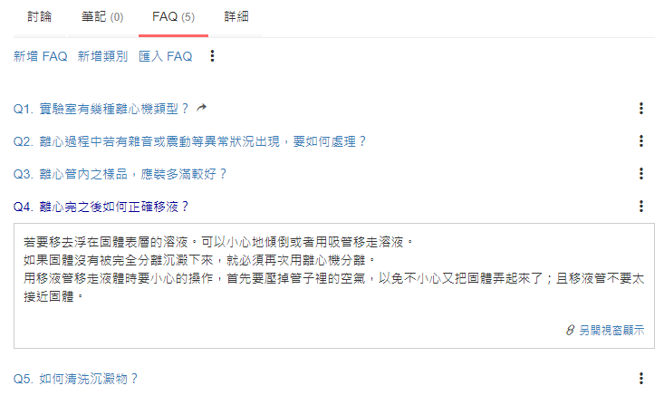 用 km+ 收集很簡單,直接在媒體 (例如實驗 SOP) 下方新增「FAQ」,看完 SOP 後就可以看到前輩遇到的相關問題以及解決方法,這些就是珍貴的經驗!可以減少重蹈覆轍。