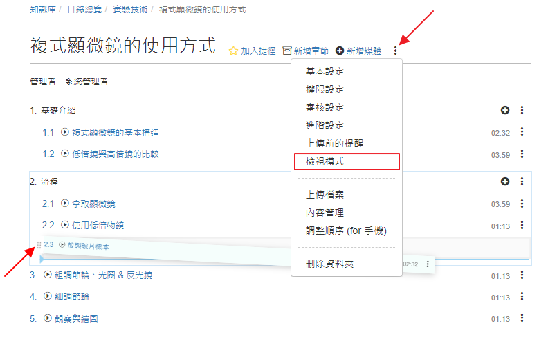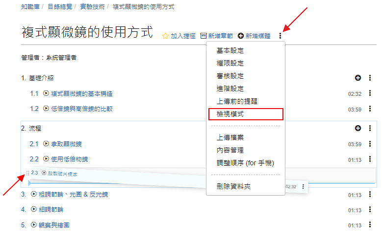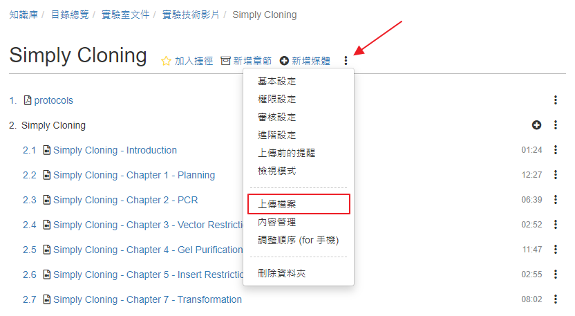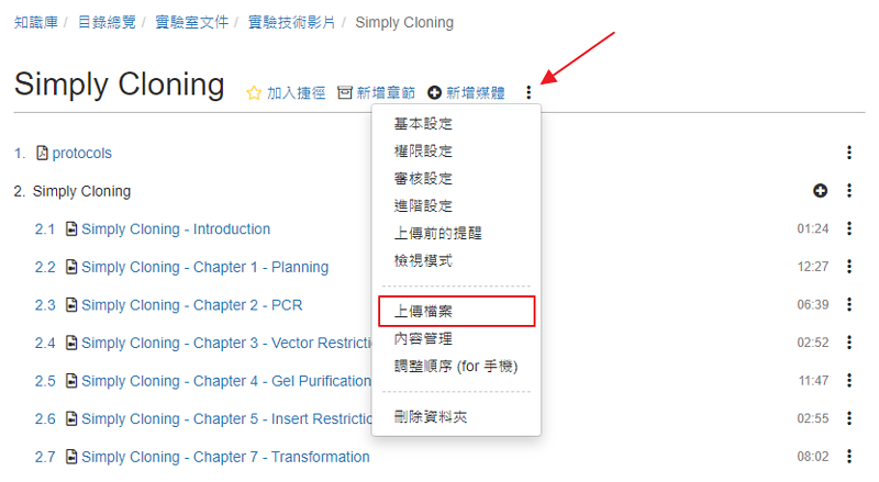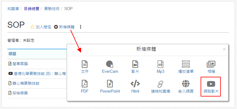 YouTube 已經有很多很棒的實驗技術影片,透過「新增媒體 / YouTube」貼上 YouTube 的影片網址,系統就會將影片嵌入,並自動建立影片的標題、原始來源、描述 ... 等資料。完成後,還可以建立索引,方便快速找到影片中特定的主題。