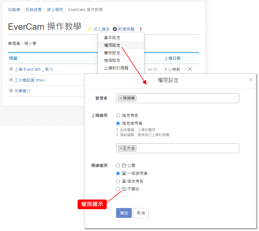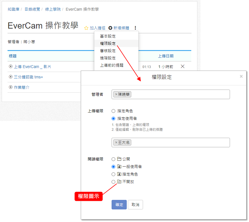 指定哪些人可以上傳,上傳後只能管理自己上傳的媒體。