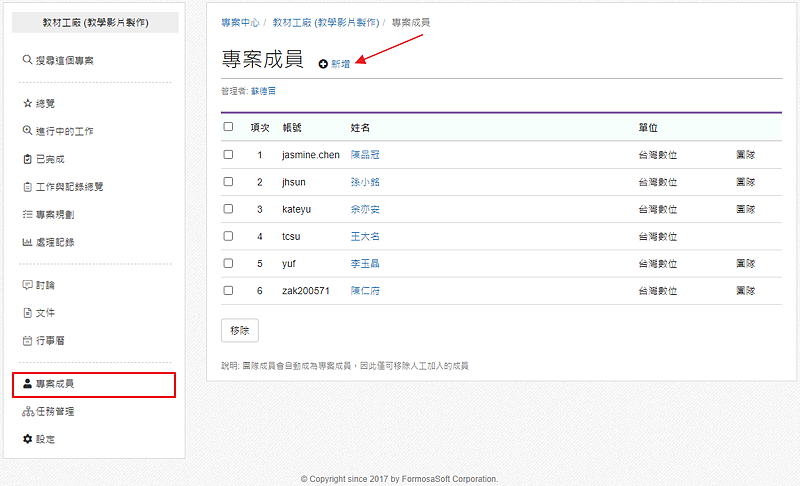 除了「專案成員」之外,「系統管理者」和「專案中心管理者」 (專案系統的負責人) 也可以看到,因為是最高權限