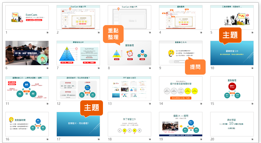 這很重要,快速回顧與掌握關鍵,此外,如果用 EverCam 錄影還會自動建立索引,事後可以直接跳重點閱讀。