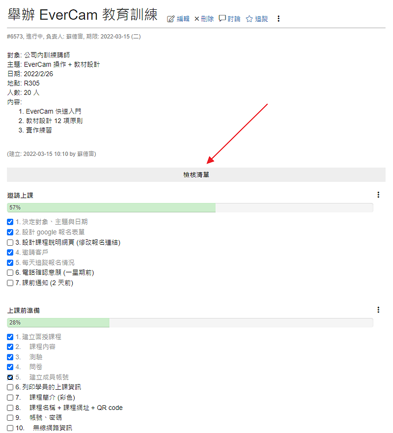 接下來,我們就從以下這個典型的案例,說明如何善用這五大工具,並透過策略「邊做邊紀錄、下次照著做、持續改善」,讓「事情」做的又快又好、「經驗」在不知不覺中記錄之外,更打造一個高效率的教育訓練環境。
